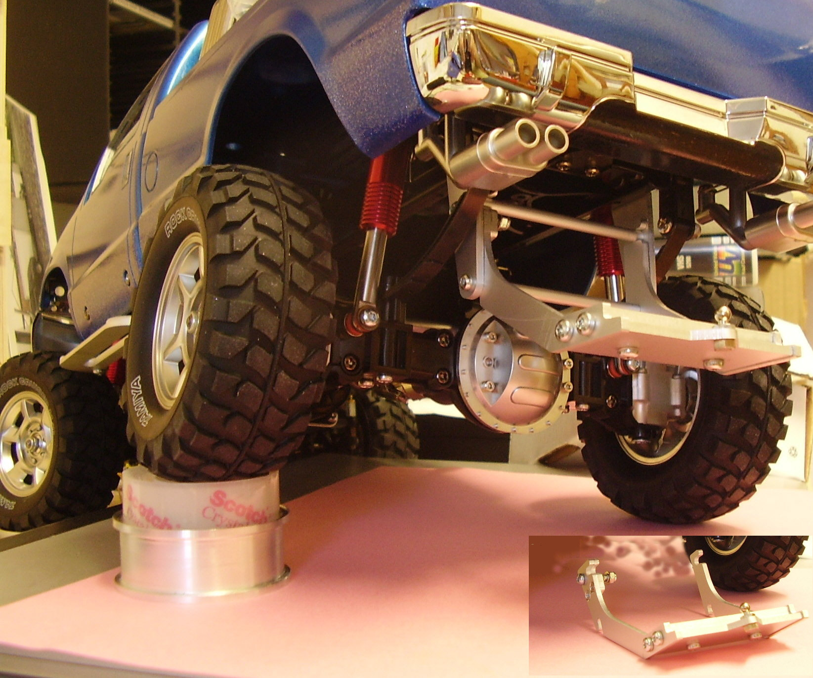 Anhängevorrichtung an der hinteren Achsaufhängung des Tamiya FF01 Chassis. Abstände